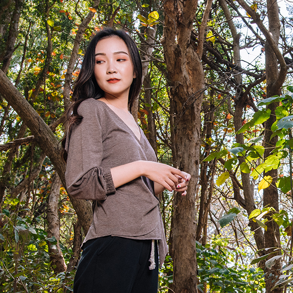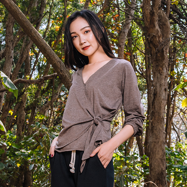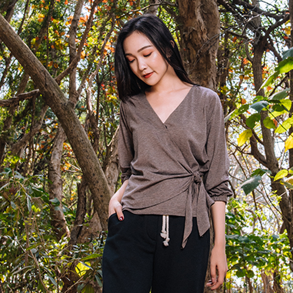 MIT和風吹拂側綁帶上衣(咖啡)