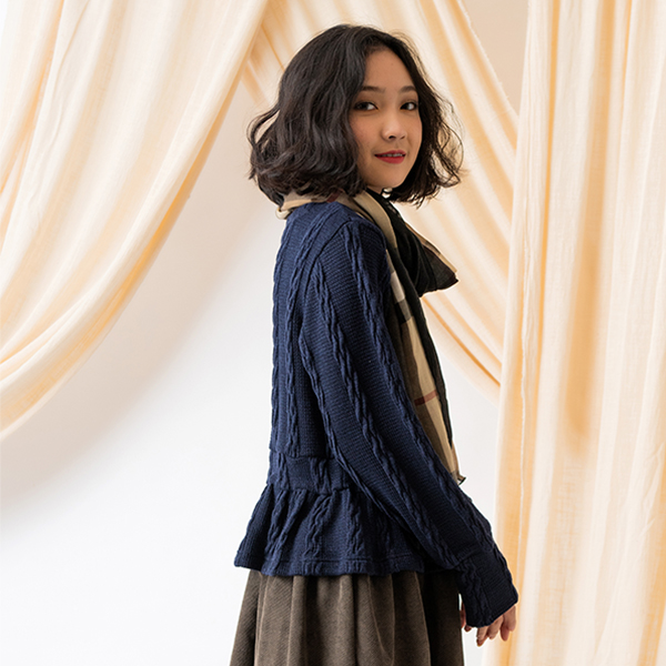 彈力麻花編織材料,輕量質地與舒適觸感,下擺抽縐小設計,更添唯美風格。