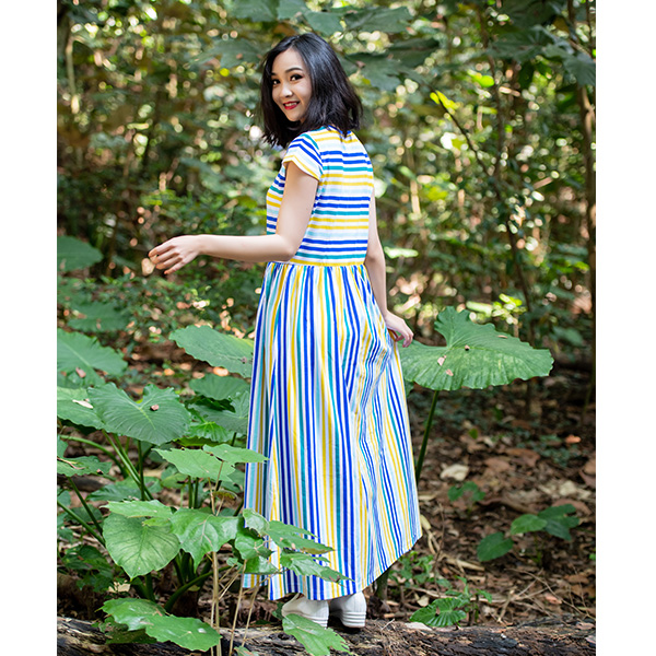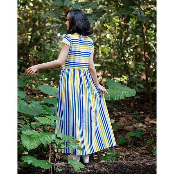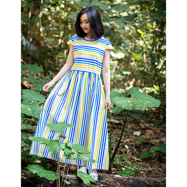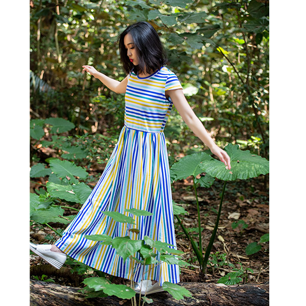 彩虹氛圍條紋,為長版洋裝帶入清爽風格,彈性色織材料穿著更舒適,腰部細褶剪接更能修飾線條,一件穿搭就上線!