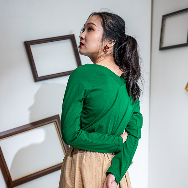 素面V領T恤,修飾上身線條,布料舒適有彈性,簡單穿搭有型!