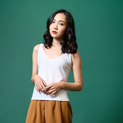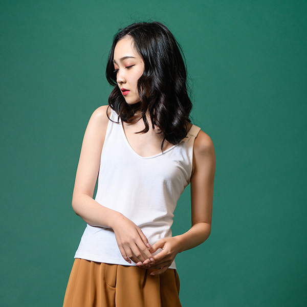 柔軟舒適的棉質材料、V領與清新典雅的修身剪裁完美結合,無論單穿或搭配外套穿著皆合適,為多場合實穿單品。