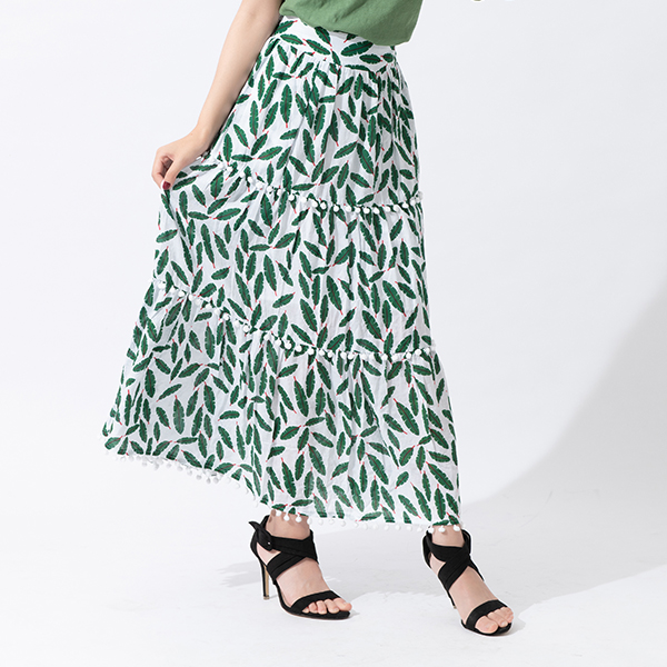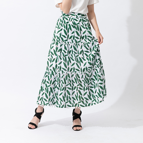 享受夏季湖畔風情,雙色條紋、綠葉繽紛圖樣帶出清爽舒適,抽縐款型、裙擺小圓球裝飾,活潑氣息十足!