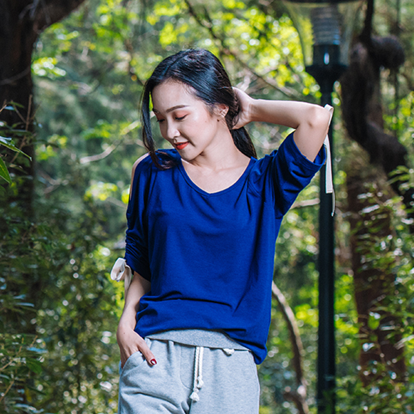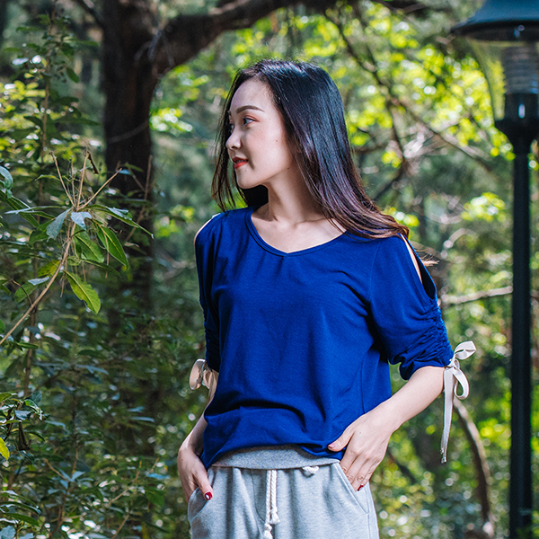 MIT露肩七分袖上衣(深藍)