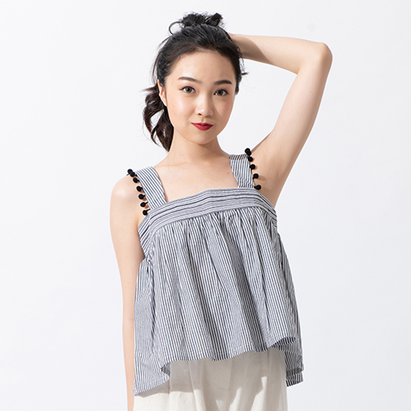 湖畔時光 無袖上衣(黑白條)
