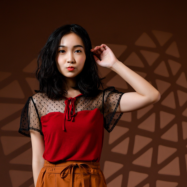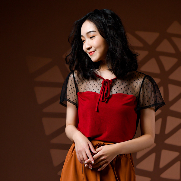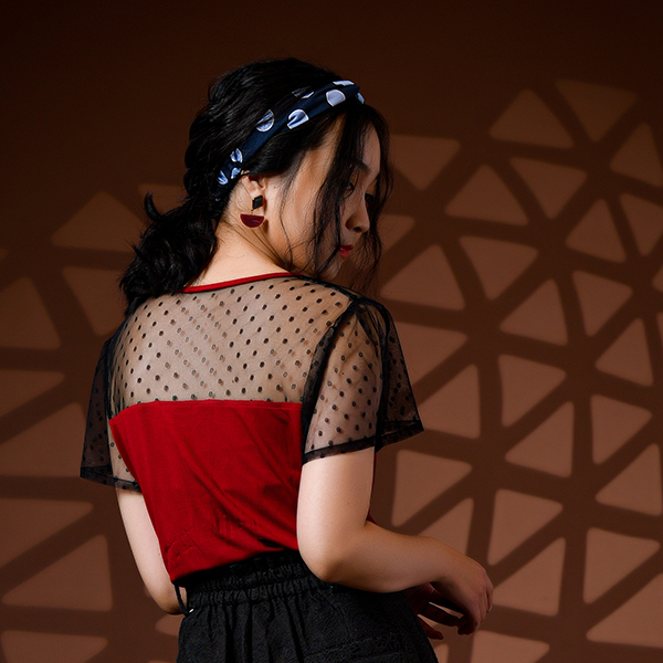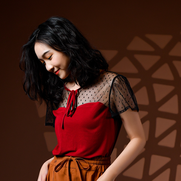 輕質柔軟材料,與圓點網紗結合,胸型弧度、波浪袖展現最佳線條。