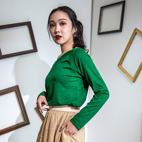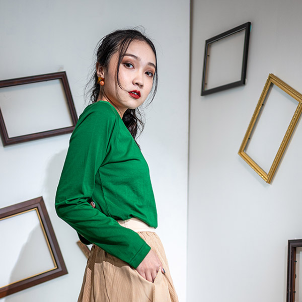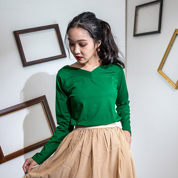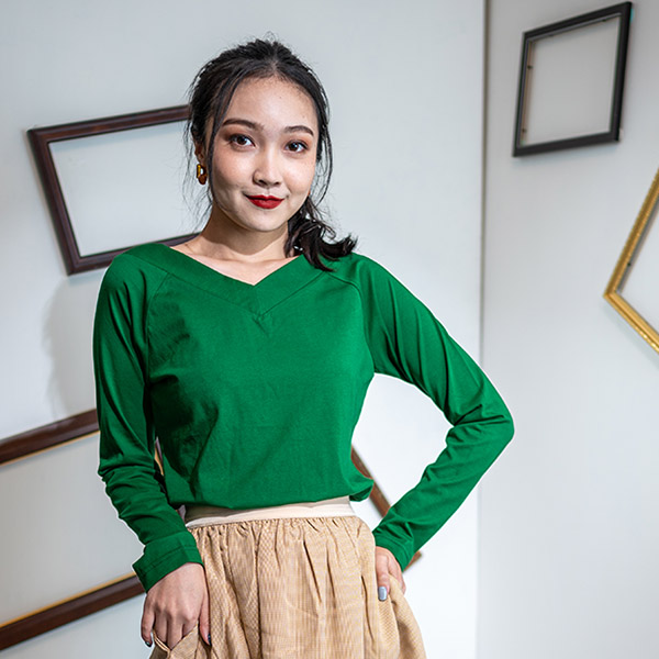 素面V領T恤,修飾上身線條,布料舒適有彈性,簡單穿搭有型!