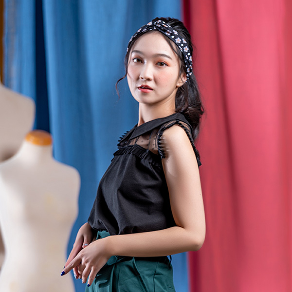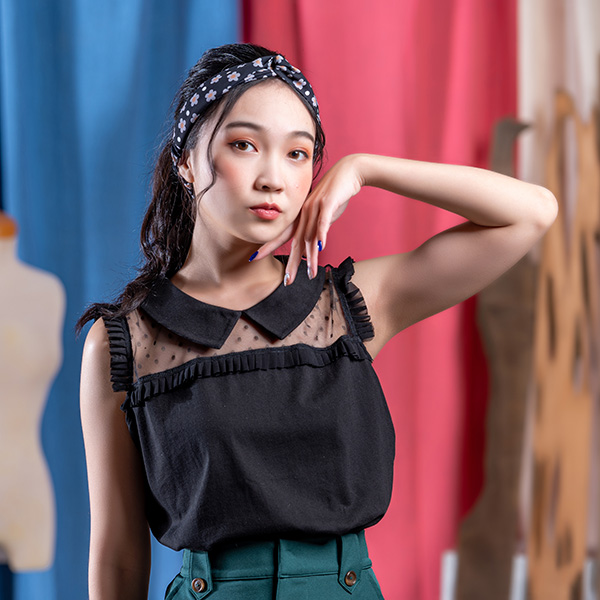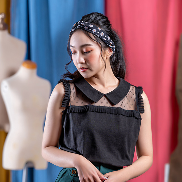 百褶裝飾邊縫,紗網搭配呈現復古感。